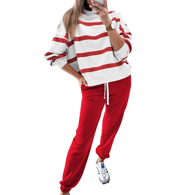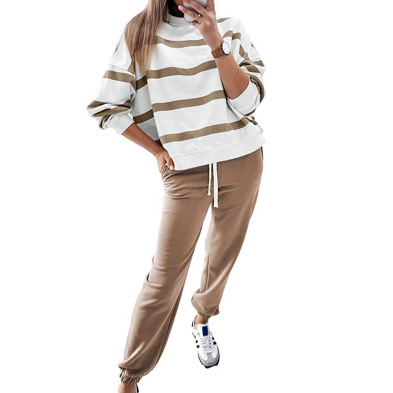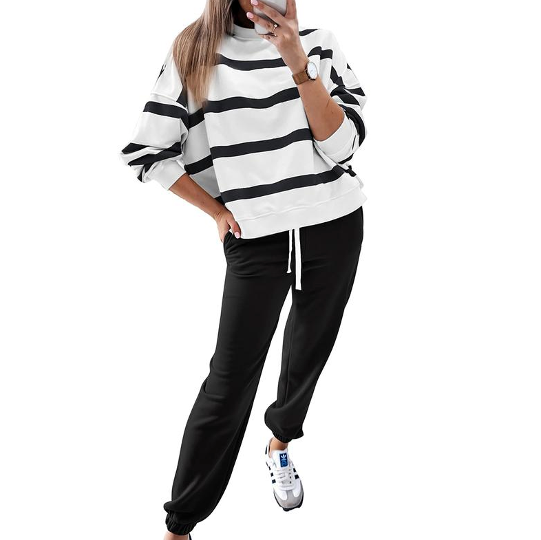 Bold stripes on the top make a simple outfit look fresh and stylish in seconds.